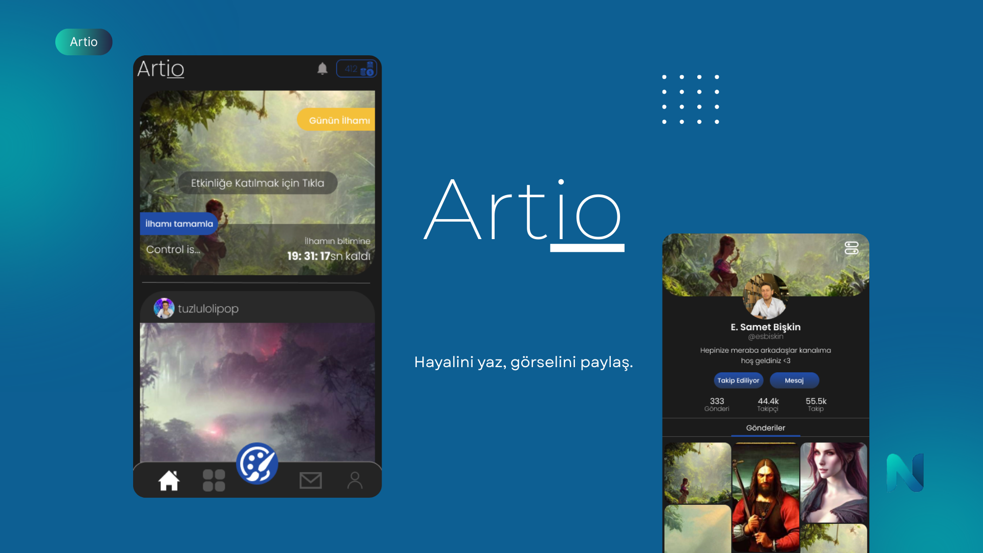 Artio, yapay zekâ destekli görsel üretim ile sosyal medya deneyimini yeniden tanımlıyor. Kullanıcıların yazdığı metinleri görsele dönüştürerek paylaşılabilir içerik haline getiriyor. Bu sayede herkes, hayal gücünü teknolojiyle buluşturup kendi dijital sanatını kolayca üretebiliyor.